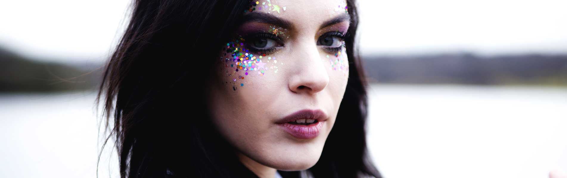 Meillä Shockilla on useita erilaisia glittermeikkejä. Meillä on muun muassa Glam Dust -meikkivoide, jota voit tietenkin käyttää koko vartalollasi, kasvoillasi ja hiuksissasi. Glitterin levittäminen on helppoa kiinnittämällä se vaseliinilla, hiuslakalla tai hyytelöllä. Glitteri kiinnittyy fantastisen hyvin ja pysyy koko illan!