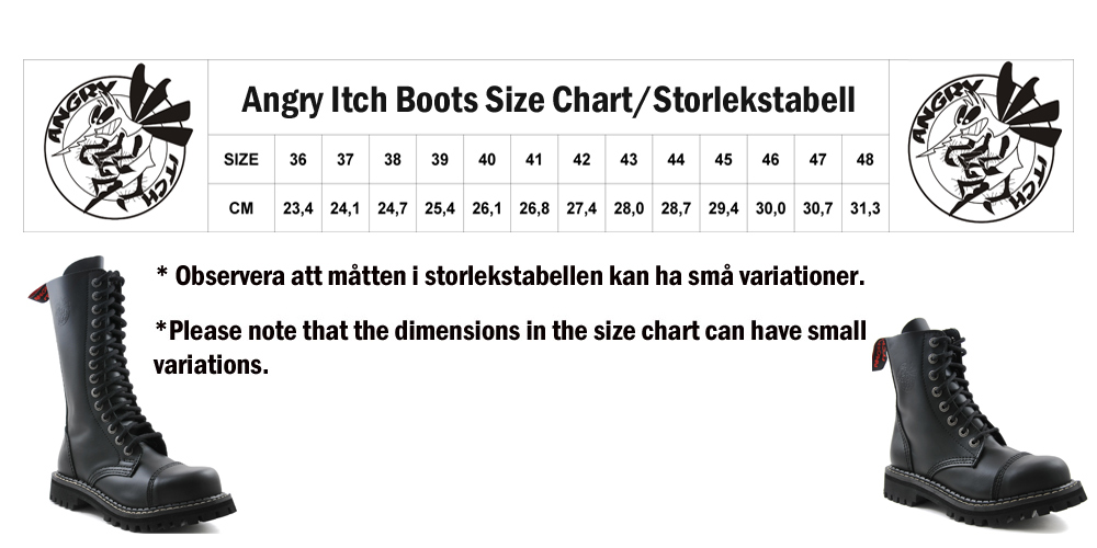 10 Eye Steel Toe ja 3 solki Boots Leather Black on todella mukava saappaat 3 hihnalla ja vetoketjulla sivulla, valmistettu EU:ssa laadukkaasta Angry Itchin nahasta. Tämä on musta, keskikokoinen malli, joka sopii täydellisesti rokkari-, punk- tai goottivaatekaappiin, niin arkeen kuin juhlaankin.