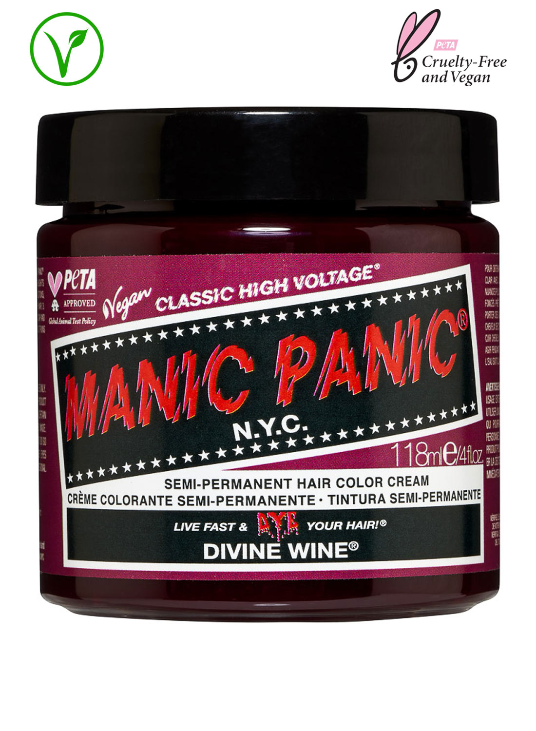 Manic Panic's Classic Divine Wine on puolipysyvä hiussävy, joka antaa hiuksille viininpunaisen värin.