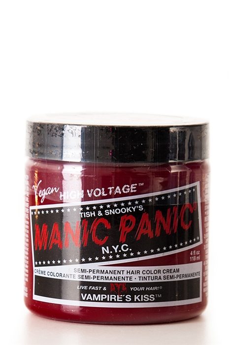 Manic Panic's Classic Vampires Kiss on puolipysyvä hiussävy, joka tuottaa punaisen hiusvärin.