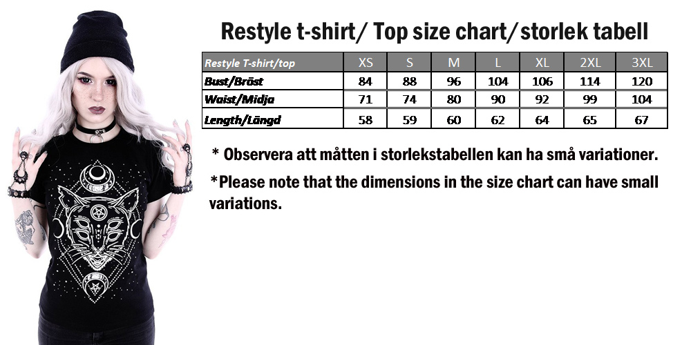 Galaxy Cat Black Tee on tyylikäs, goottilainen Restylen t-paita. Malli on valmistettu mukavasta, vahvasta puuvillasta. Printti koostuu suuresta goottilaisesta, kaksisilmäisestä kissasta sekä geometrisesta taustasta tähtiä ja kuita. Täydellinen kaikille goottikissan ystäville!