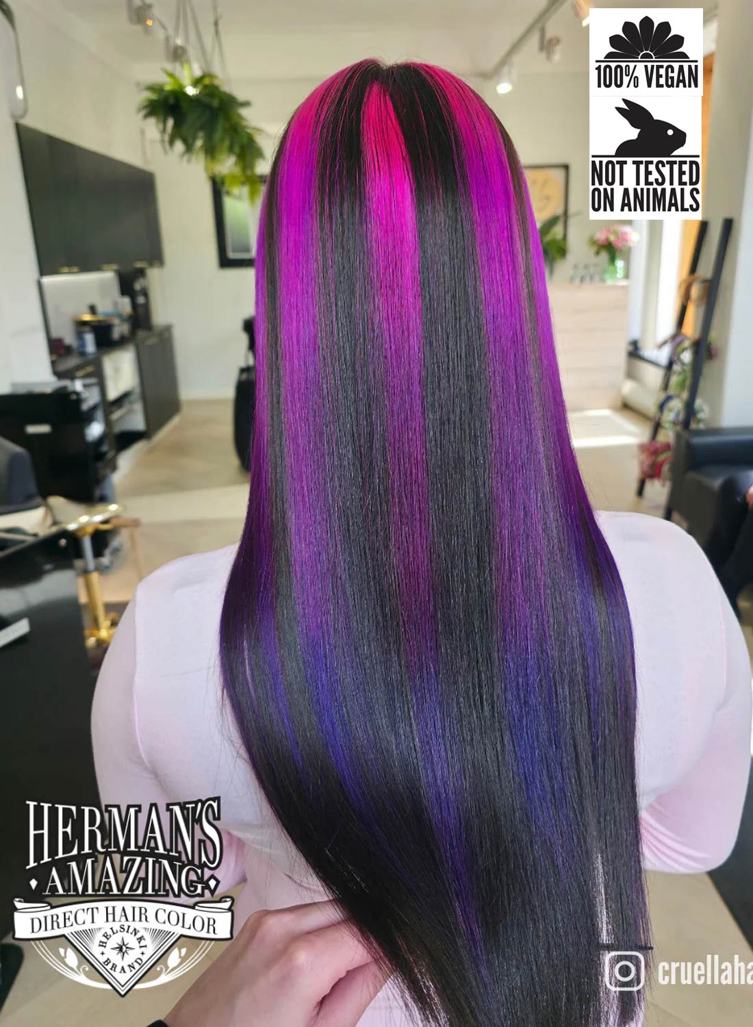 Herman's Amazing Roxy Beet Hair Color on puolipysyvä hiusväri, joka antaa violetin värin.