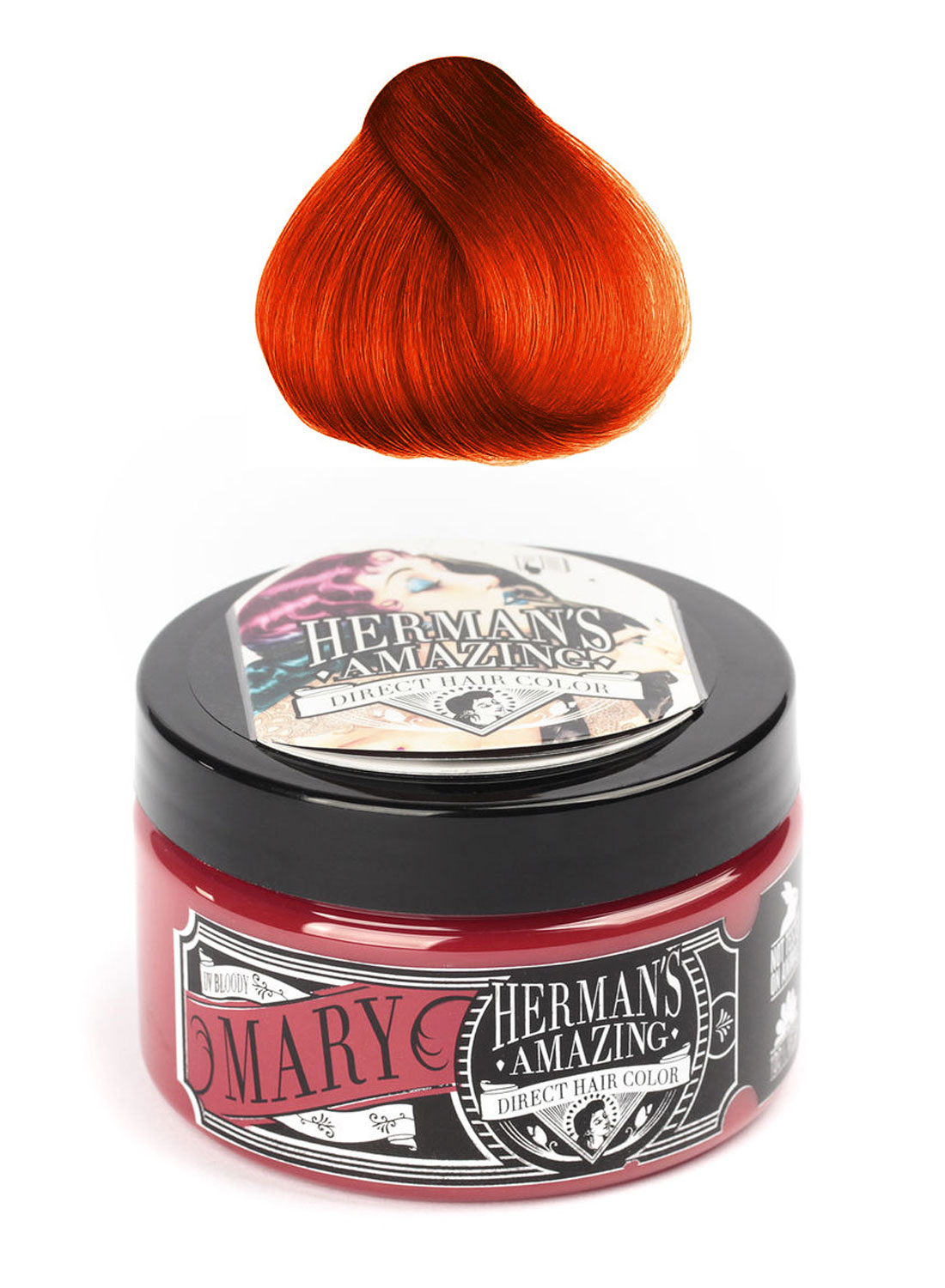 Herman's UV Bloody Mary Hair Color on puolipysyvä hiussävy, joka antaa UV-punaisen hiusvärin.