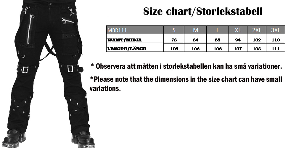 KIller Bondage Trousers Black ovat Bondage-housut Restless ‘N’ Villi! Joustava kangas olkaimet, taskut, niitit ja vetoketjut. Irrotettavat hihnat.