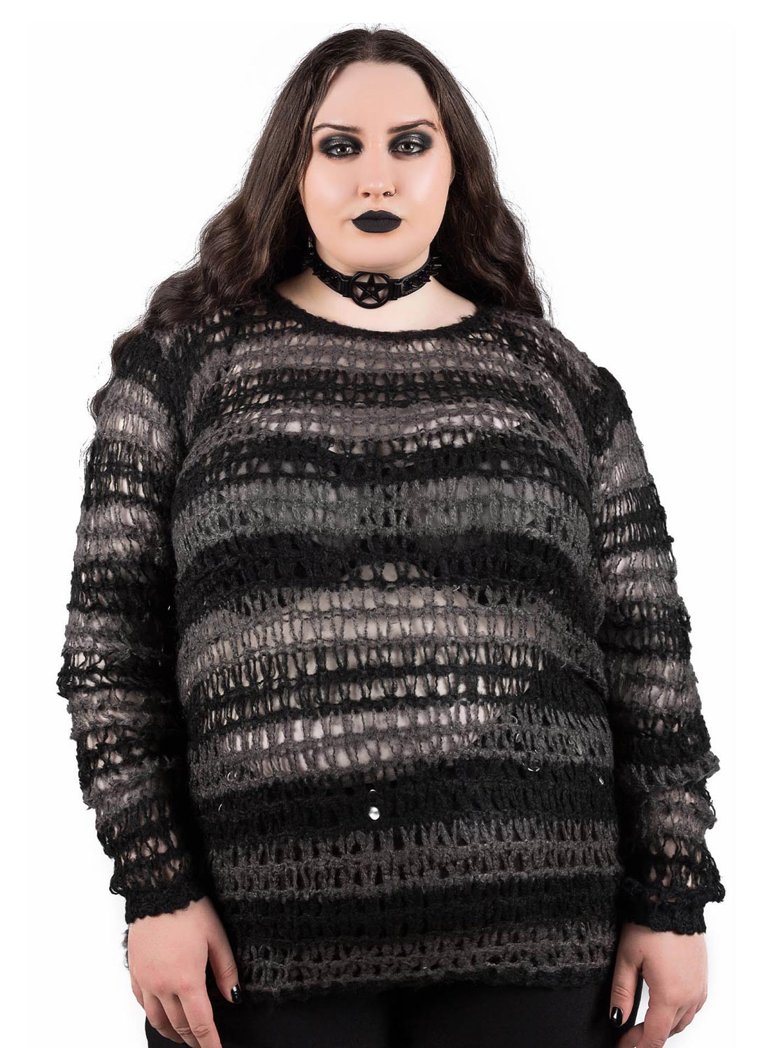 Killstarin outo daze Faux-Mohair -pusero. 90-luvun grunge-vaikutteinen pehmeä neulepusero, täydellinen jokapäiväiseen käyttöön. Swag ja harmaa raidallinen pusero, joka on erittäin pitkä, joten se on helppo pukea ylös tai alas. Ahdistuneilla yksityiskohdilla ja matalalla pääntiellä. Täydellinen festivaaleille, keskiyön kävelylle kuun kanssa ja krapulasunnuntaihin.