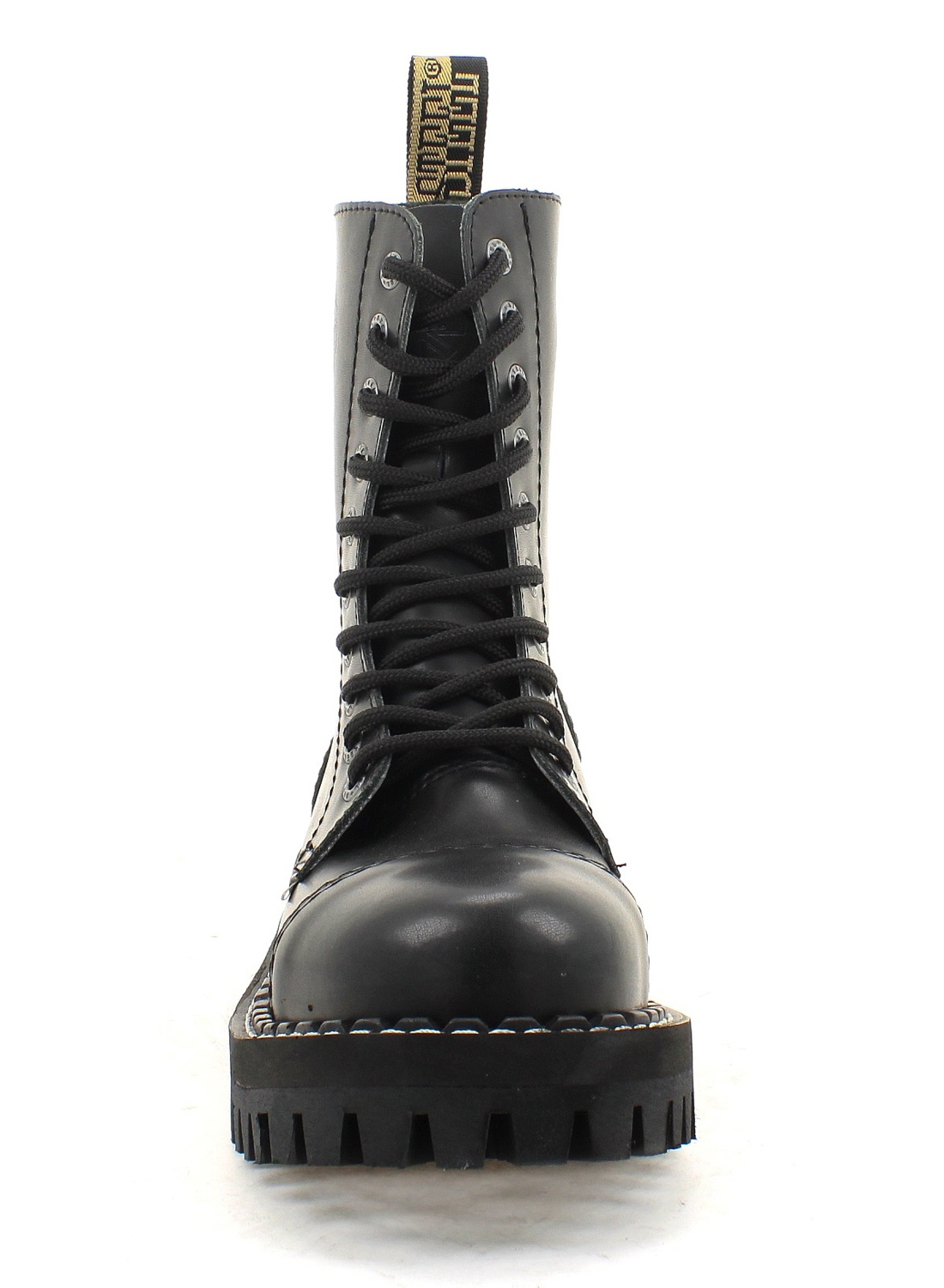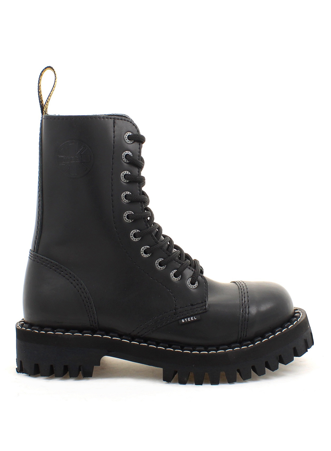 Steel 10 Holes High Steel Toe Boots ovat saappaat, joissa on teräskansi ja korkeampi pohja ja jotka on valmistettu EU:ssa Steelin laadukkaasta nahasta.